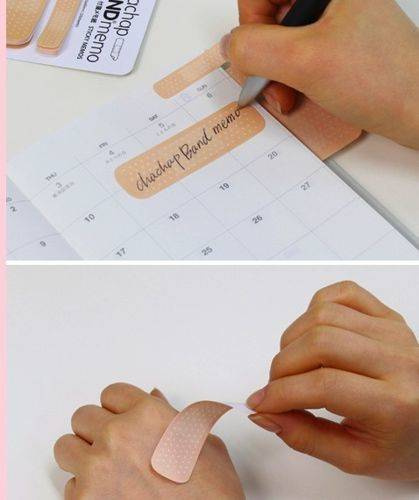 Każdy wie, jak ważną rolę w codziennej komunikacji odgrywają karteczki memo. Zapisujemy na nich rzeczy ważne, czasami wręcz kluczowe dla naszego życia (zazwyczaj na szczęście tylko biurowego). Uznając powagę wiadomości przekazywanych na karteczkach, pewien designer stworzył je w postaci... plastrów, które stosujemy w awaryjnych sytuacjach. Taki plasterek od razu rzuca się w oczy, wywołuj uśmiech i łagodzi czasem przykrą konieczność wykonania zapisanych wiadomości. Oczywiście można, a nawet trzeba zapisywać na nich wiadomości pozytywne, optymistyczne i miłe dla odbiorcy.
