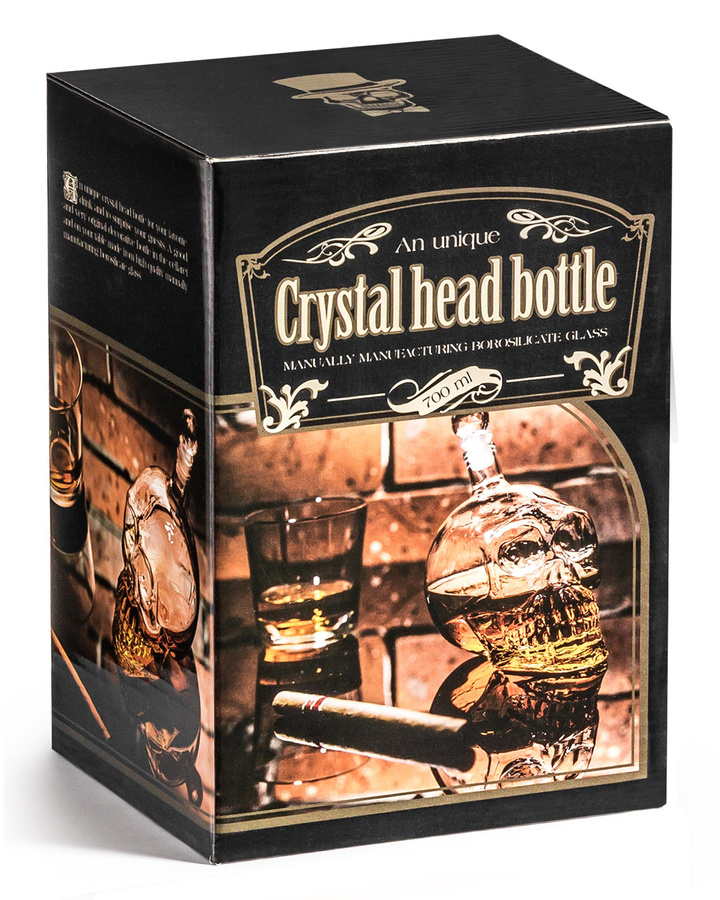 Artefakt w kształcie kryształowej czaszki ludzkiej od stuleci budzi grozę i zainteresowanie. Podobno kryształowe czaszki mają paranormalne właściwości. Podobno zebranie 13 kryształowych czaszek Majów uchroni świat przed zagładą w 2012 roku. Pewne jest tylko to, że nasza kryształowa czaszka pomieści w sobie 650 ml. szlachetnego trunku, który po nalaniu do kieliszków spowoduje spektakularny wzrost wesołości i dobrego humoru.
