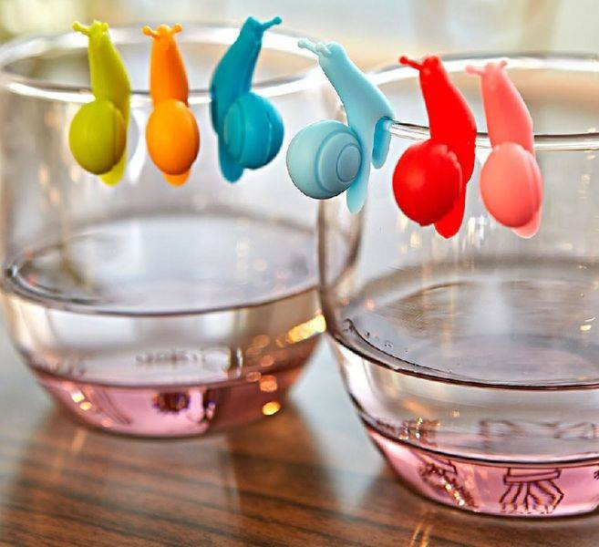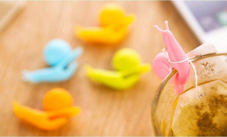 - zestaw kolorowych ślimaków do torebek na herbatę lub do oznaczania drinków