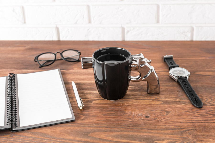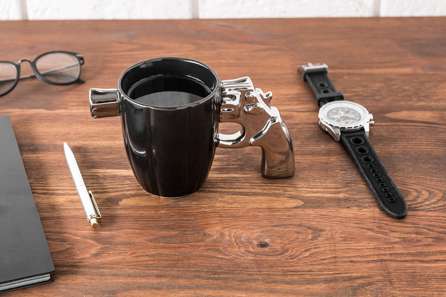 - kolor kubka czarny, kolor rewolweru srebrny