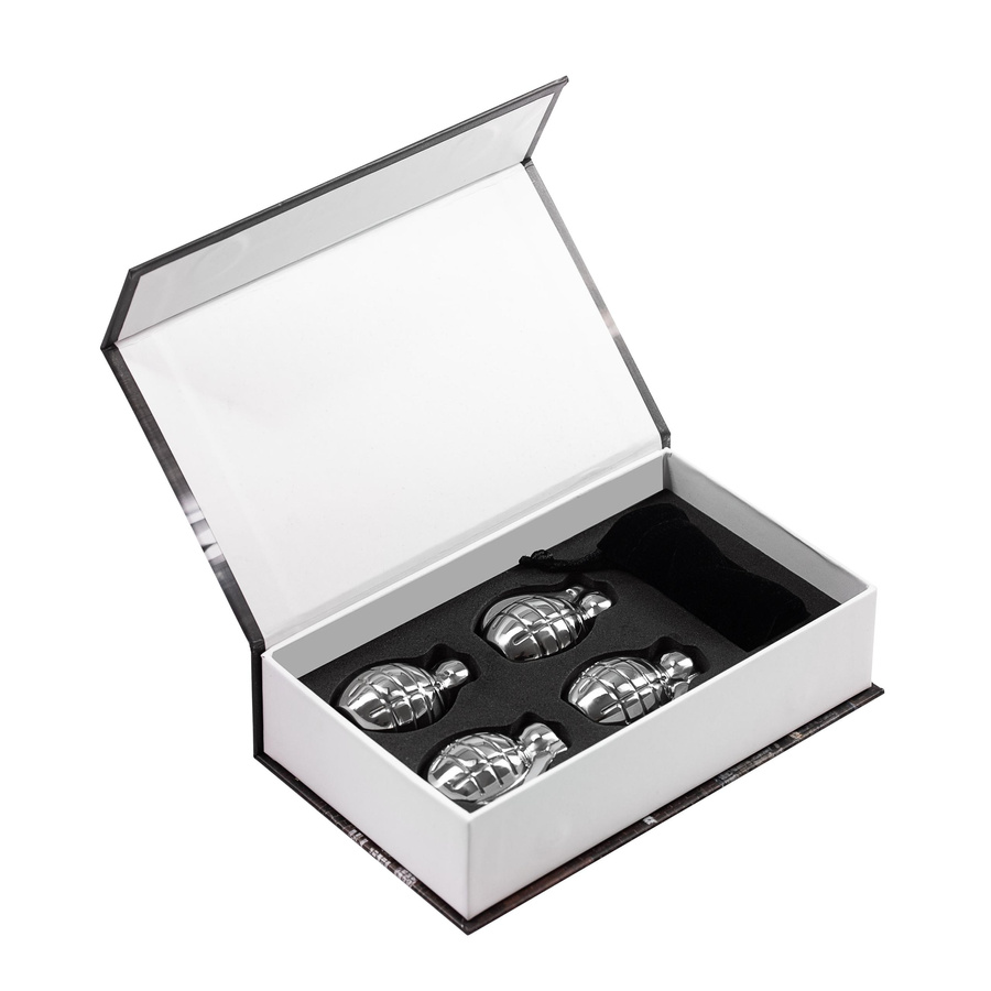 Mocna alternatywa dla kostek lodu, które rozcieńczają chłodzony napój i psują jego smak. Wypróbuj nasze metalowe granaty do drinków... W granatach znajduje się specjalny termożel, który po schłodzeniu w zamrażarce długo i skutecznie oddaje przyjemny chłód, zapewniając przyjemną temperaturę i nierozcieńczony smak Twojego drinka. Trzymaj granaty zawsze w zamrażalniku, gdzie nie zajmą Ci zbyt wiele miejsca, a w razie potrzeby wrzucisz je do szklanki czy kieliszka i zalejesz Twoim i gości ulubionym trunkiem. Oczywiście granaty chłodzą nie tylko napoje z procentami, równie dobrze sprawdzają się w sokach czy koktajlach.