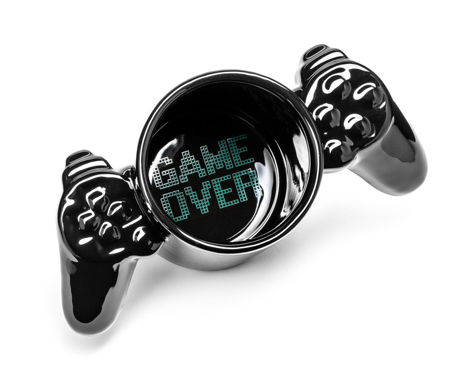 W końcu i gracze doczekali się swojego kubka. I jest to kawał kubka ;) Inspirowany kontrolerem do konsoli zrobi na każdym fanie elektronicznej rozrywki naprawdę spore wrażenie. A gdy już skończą go opróżniać im oczom ukaże się znany im doskonale napis GAME OVER. Trzeba uważać oczywiście na zawartość % w płynie, by game over nie pojawiło się wcześniej ;) Teraz wszyscy, którzy z trudem rozstają się z padem, będą mogli podczas picia kawy czy herbaty ciągle czuć pod palcami dobrze znane guziczki i kształty.