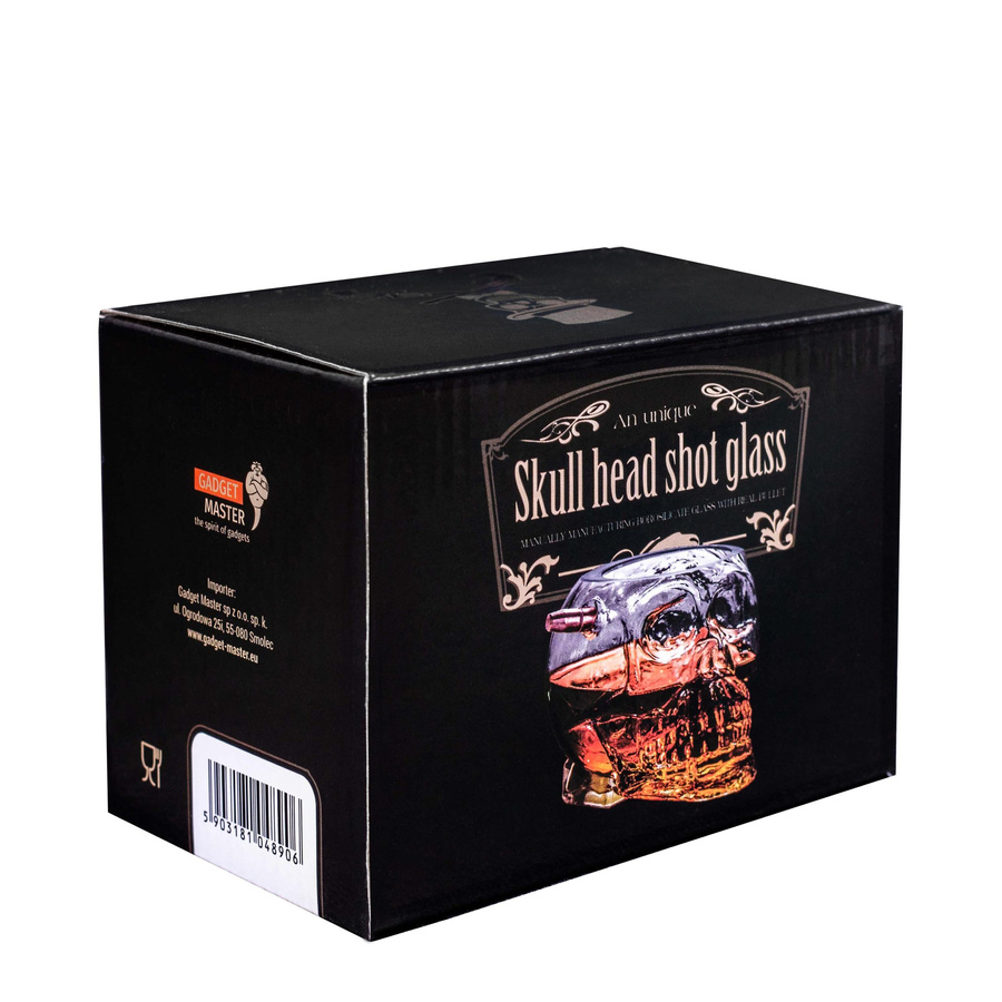 Wystrzałowa kuloodporna szklanka w czaszkowej wersji. Jakaś zabłąkana kula utkwiła tym razem w szklanej czaszce i sprawia, że jej opróżniania z ulubionego trunku staje się naprawdę niecodzienne.