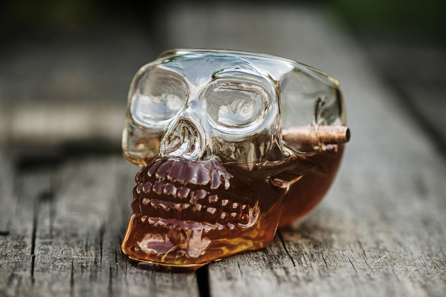 - Wystrzałowa kuloodporna szklanka w czaszkowej wersji. Jakaś zabłąkana kula utkwiła tym razem w szklanej czaszce i sprawia, że jej opróżniania z ulubionego trunku staje się naprawdę niecodzienne.