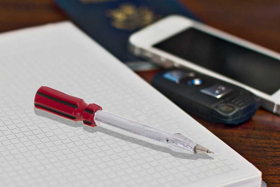 Słusznych rozmiarów i do złudzenia przypominający prawdziwy śrubokręt długopis nie tylko do użytku w warsztacie.