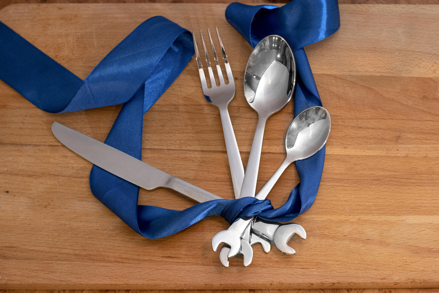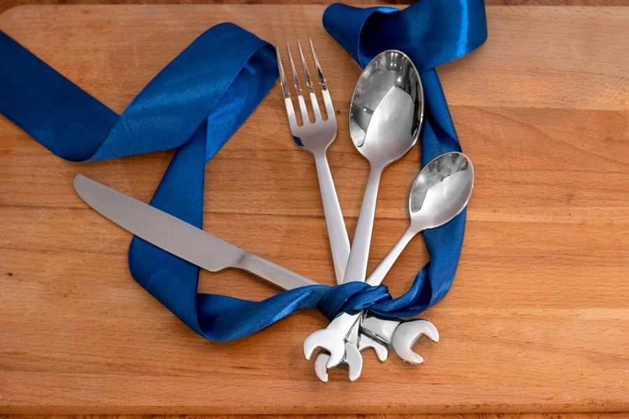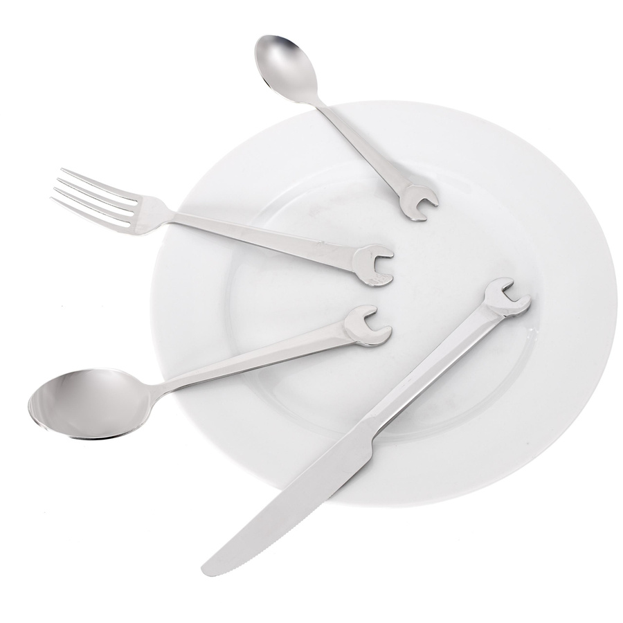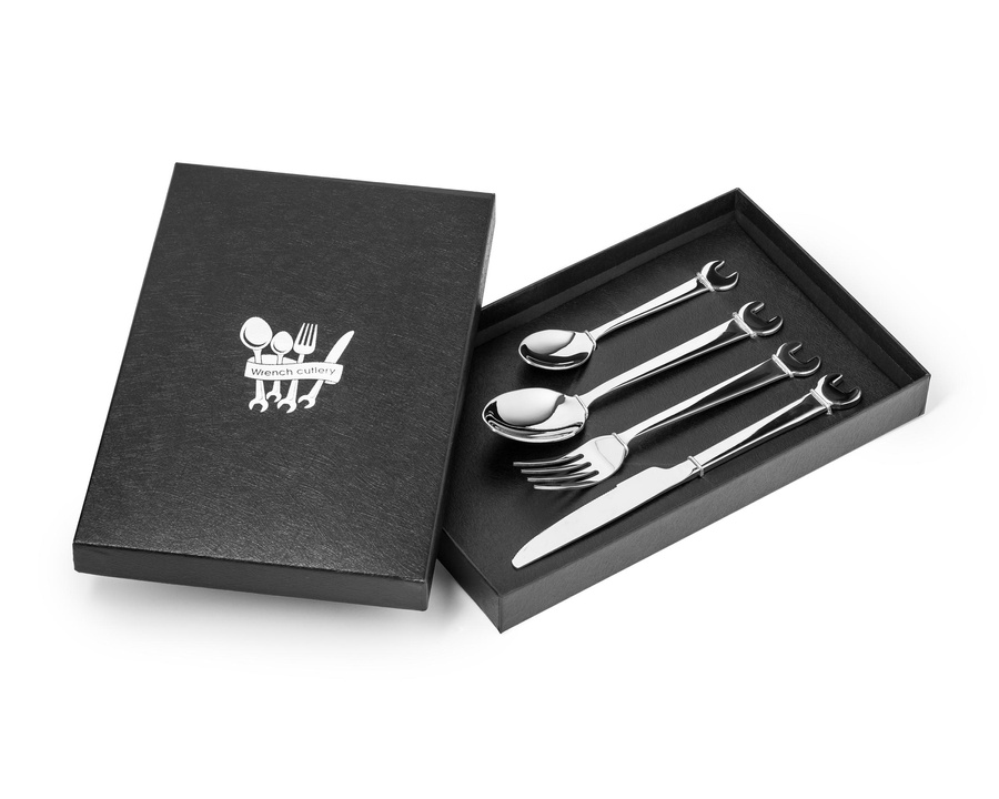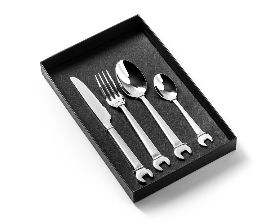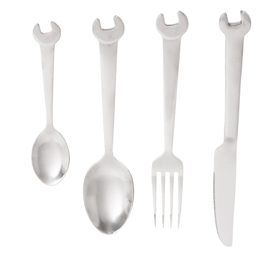 Zestaw sztućców z wysokiej jakości stali nierdzewnej nie tylko dla prawdziwych mechaników, ale dla wszystkich, którzy lubią od czasu do czasu poszaleć z kluczem czy młotkiem w dłoni ;)