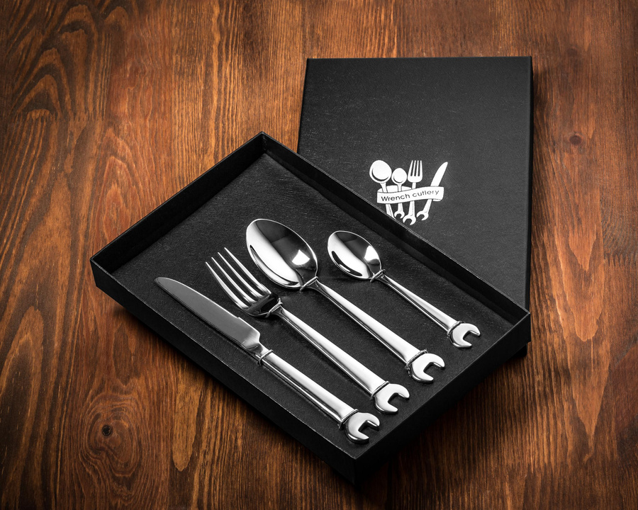 - Zestaw sztućców z wysokiej jakości stali nierdzewnej nie tylko dla prawdziwych mechaników, ale dla wszystkich, którzy lubią od czasu do czasu poszaleć z kluczem czy młotkiem w dłoni ;)
