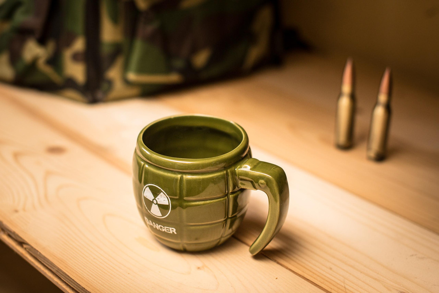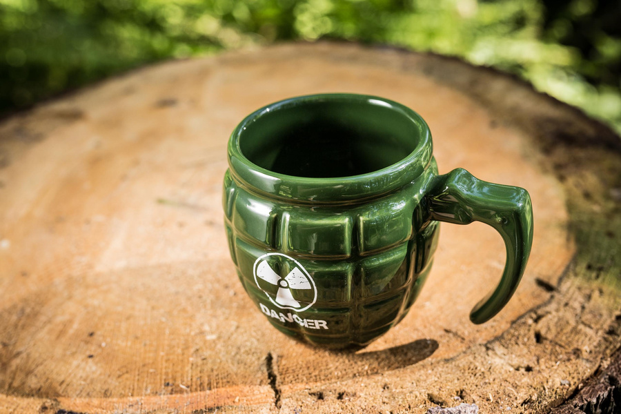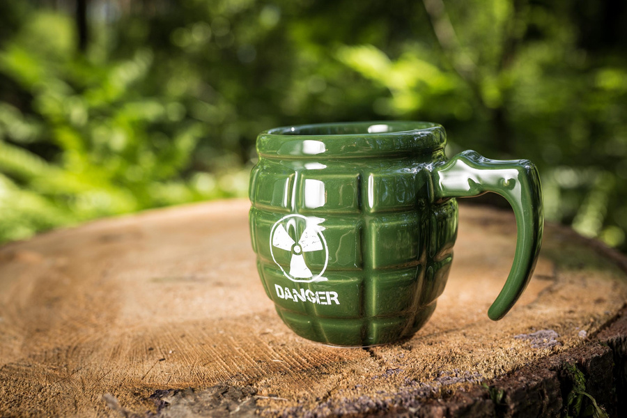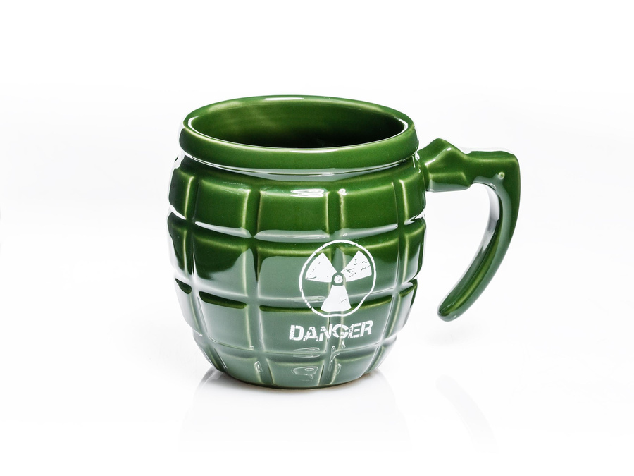 Po wystrzałowym kubku i kubku twardziela czas na... bombowy kubek w kształcie i kolorze granatu. Bez wątpienia bardziej przypadnie on do gustu męskiej części społeczeństwa, jednak z pewnością zjedna on sobie również niektóre nietuzinkowe panie. Żywy kolor oraz ucho kubka w kształcie tzw. łyżki granatu to dodatkowe atrybuty tego niebezpiecznego kubka. Z takim kubkiem na pewno poczujesz się bezpieczniej, zwłaszcza w tych niepewnych czasach. Pamiętaj jednak, by nie rzucań nim w stronę ludzi lub zwierząt!