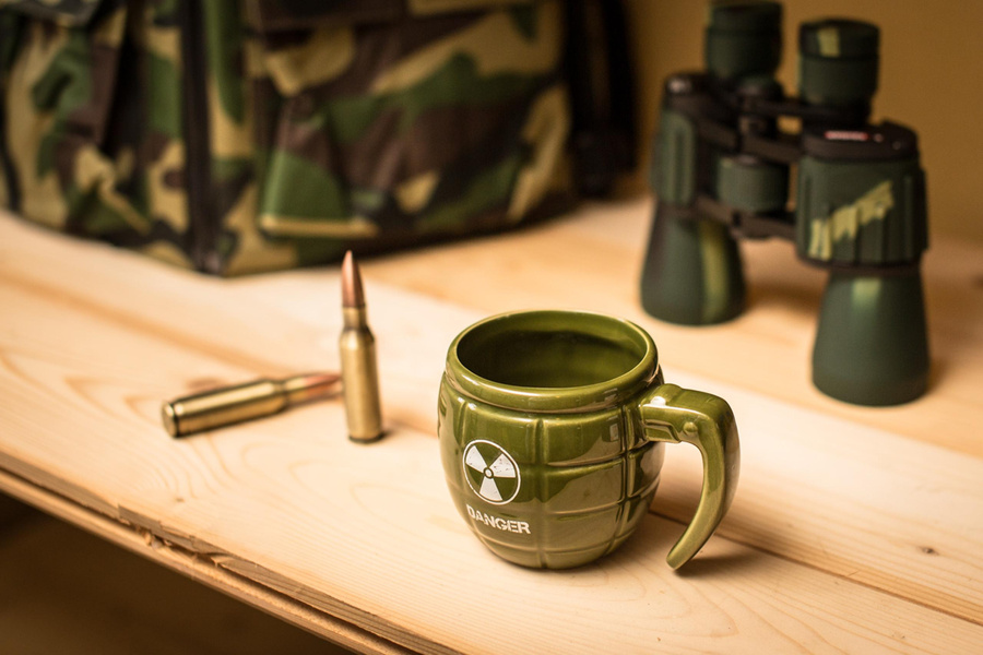 - Po wystrzałowym kubku czas na... bombowy kubek w kształcie granatu. Bez wątpienia bardziej przypadnie on do gustu męskiej części społeczeństwa, jednak z pewnością zjedna on sobie również niektóre nietuzinkowe panie.