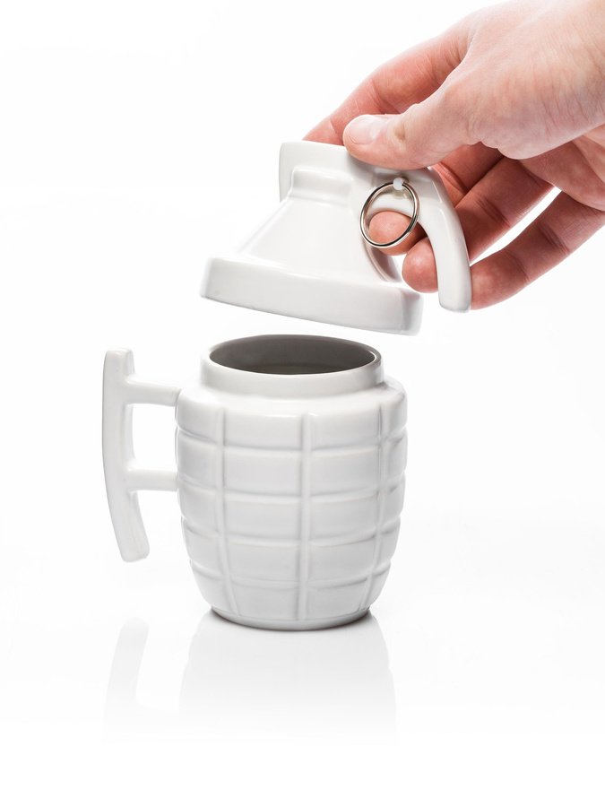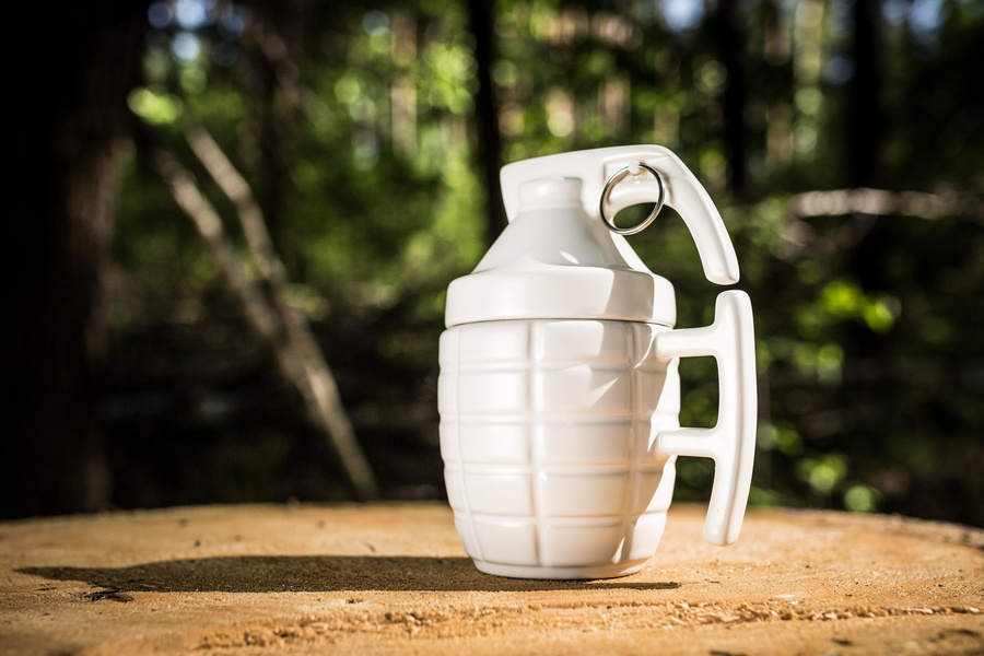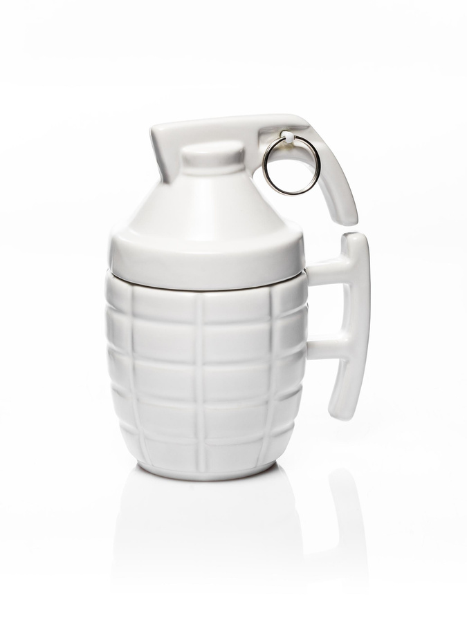 • Po wystrzałowym kubku czas na... bombowy kubek w kształcie i kolorze granatu. Bez wątpienia bardziej przypadnie on do gustu męskiej części społeczeństwa, jednak z pewnością zjedna on sobie również niektóre nietuzinkowe panie.