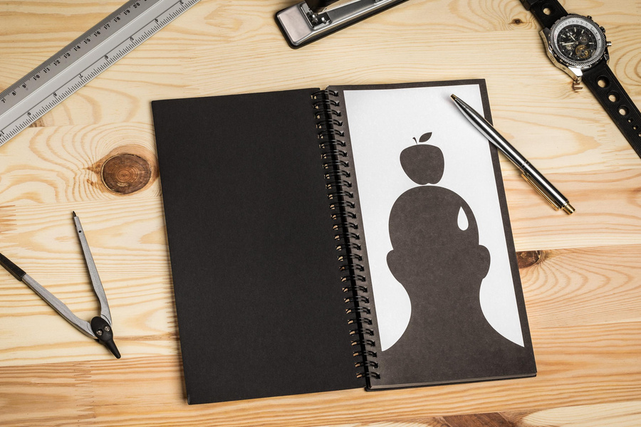 - notes z czarną twardą okładką i odwzorowaniem noża w 3D