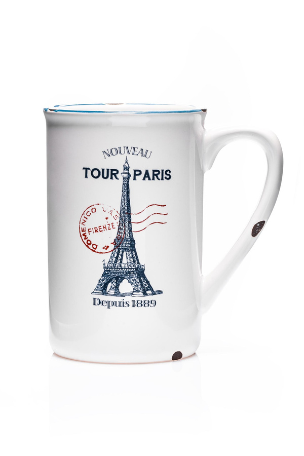 Piękny i stylowy kubek porcelanowy stylizowany na emaliowany kubek z dawnych czasów. Wysoka jakość wykonania oraz eleganckie motywy sprawią, że codzienne smakowanie kawy czy herbaty nabierze nowego szlachetnego wręcz wymiaru. Elegancki upominek dla wszystkich ceniących sobie stylowe przedmioty codziennego użytku utrzymane w stylu vintage czy retro. Szczypta nostalgii w połączeniu z klasyczną formą.