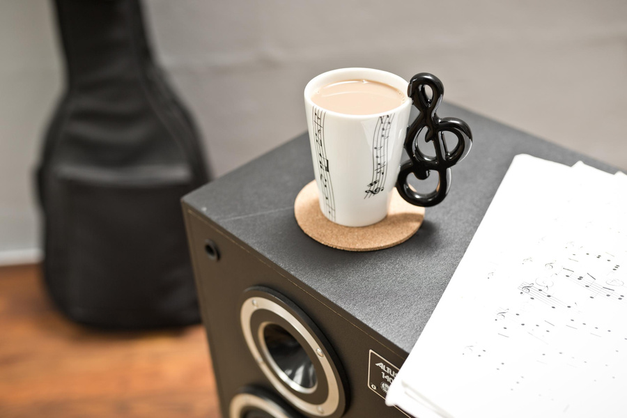- elegancki kubek muzyka z uszkiem w kształcie klucza wiolinowego