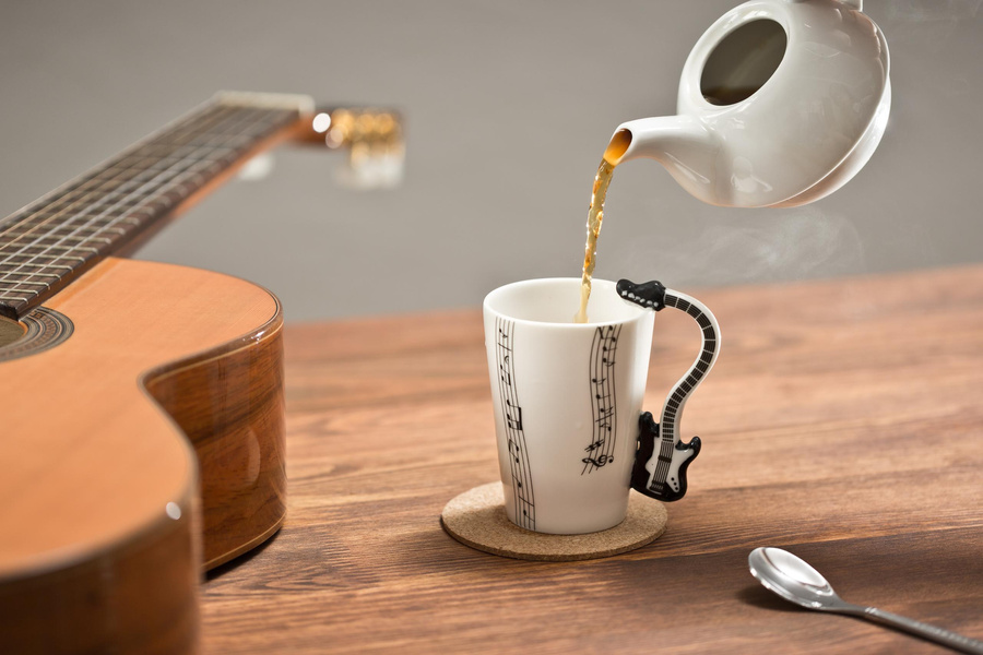 - Super kubek dla wszystkich, którym coś w duszy gra ;) Zacznij dzień śpiewająco pijąc poranną kawę czy herbatę z muzycznego kubka. Chwytając mocno za uszko w kształcie instrumentu, poczujesz, że z tym kubkiem naprawdę wszystko gra...