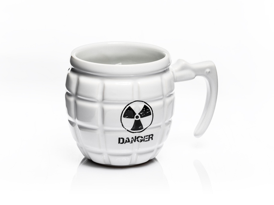 Po wystrzałowym kubku i kubku twardziela czas na... bombowy kubek w kształcie granatu. Bez wątpienia bardziej przypadnie on do gustu męskiej części społeczeństwa, jednak z pewnością zjedna on sobie również niektóre nietuzinkowe panie. Ucho kubka w kształcie tzw. łyżki granatu to dodatkowy atrybut tego niebezpiecznego kubka. Z takim kubkiem na pewno poczujesz się bezpieczniej, zwłaszcza w tych niepewnych czasach. Pamiętaj jednak, by nie rzucań nim w stronę ludzi lub zwierząt!