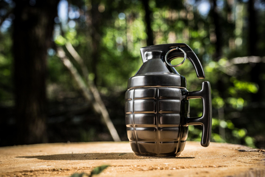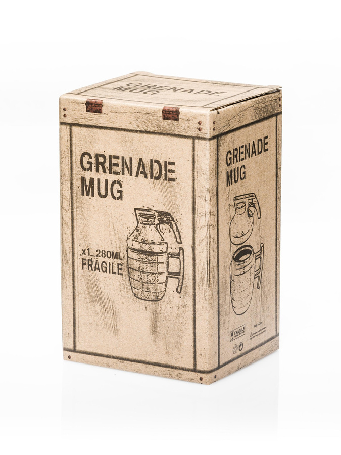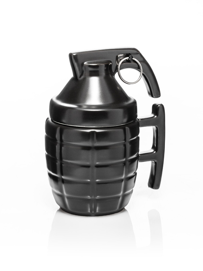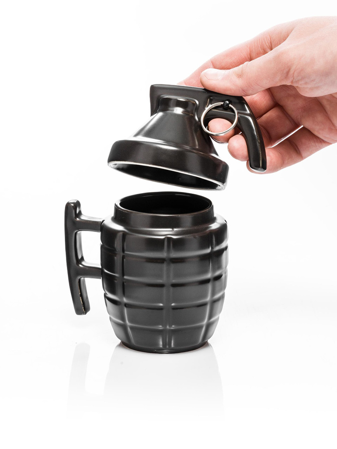 - Po wystrzałowym kubku czas na... bombowy kubek w kształcie i kolorze granatu. Bez wątpienia bardziej przypadnie on do gustu męskiej części społeczeństwa, jednak z pewnością zjedna on sobie również niektóre nietuzinkowe panie.