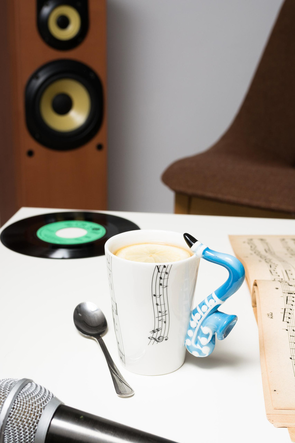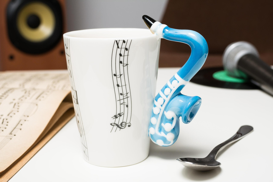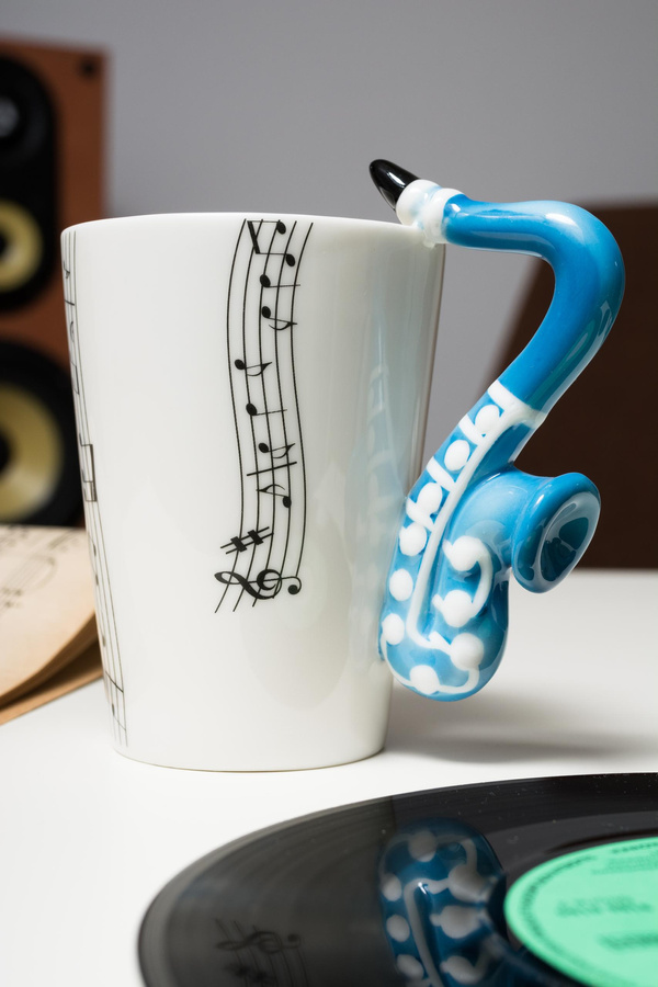 - elegancki kubek muzyka z uszkiem w kształcie instrumentu