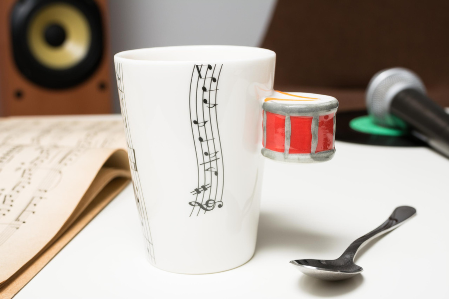 - elegancki kubek muzyka z uszkiem w kształcie instrumentu