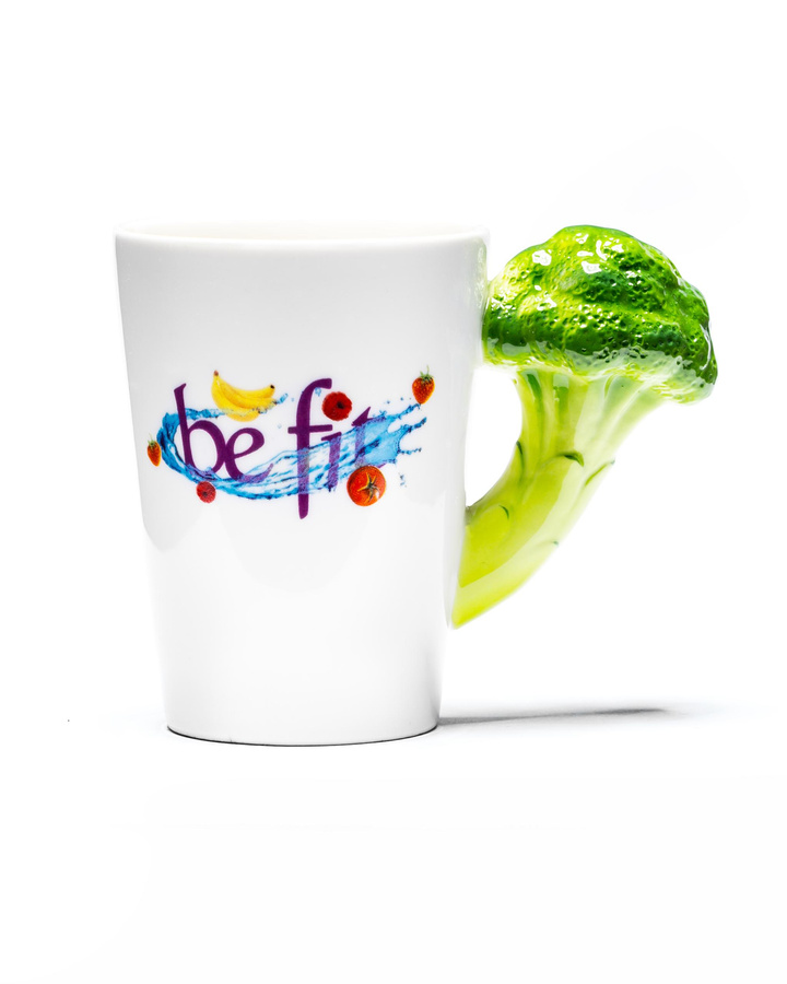 - rześki kubek vege z uszkiem w kształcie brokuła
