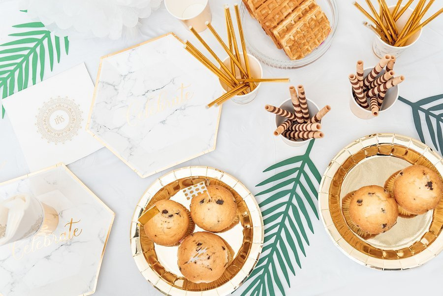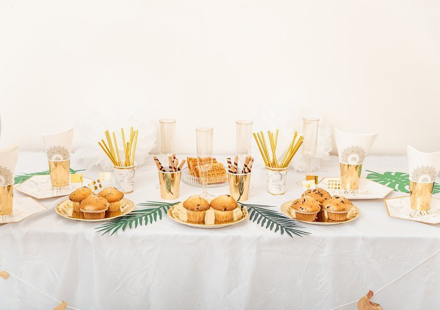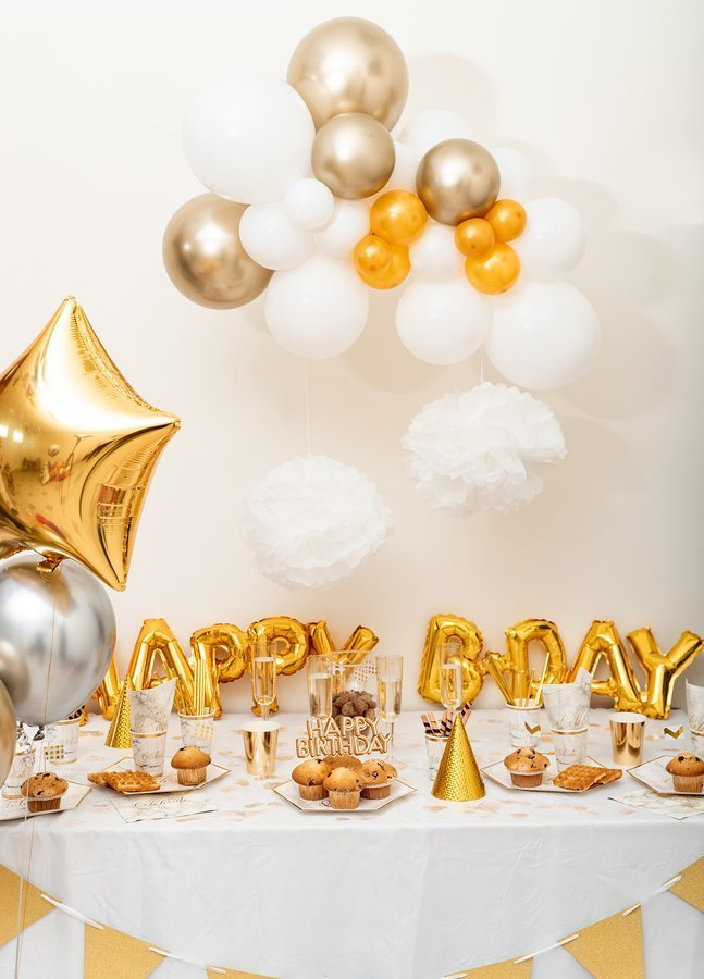 - Biało złotą girlandę można wykorzystać jako niesamowitą dekorację na wesele, chrzest lub komunię. Jest uniwersalna, stąd pasuje również na eleganckie przyjęcia urodzinowe.