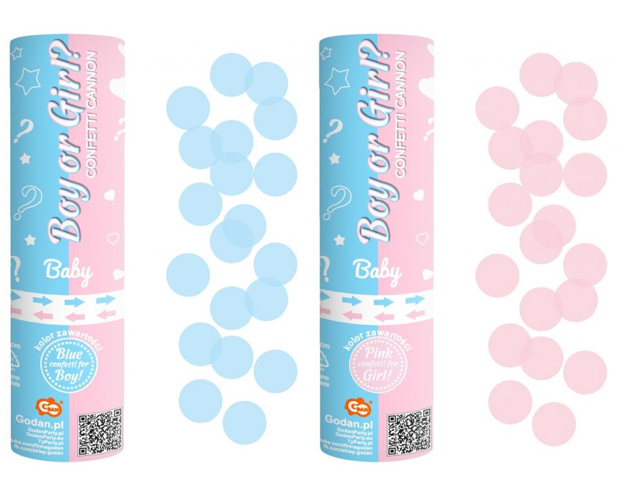 - Nadaje się na każdą imprezę Baby Shower! Z tuby wylatują różowe/niebieskie papierowe kółeczka. Konfetti nie zawiera ładunków pirotechnicznych.