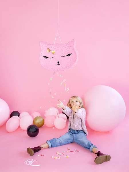 Piniata w kształcie uroczego, różowego kotka to niezapomniany element każdej imprezy urodzinowej dla dziewczynek.