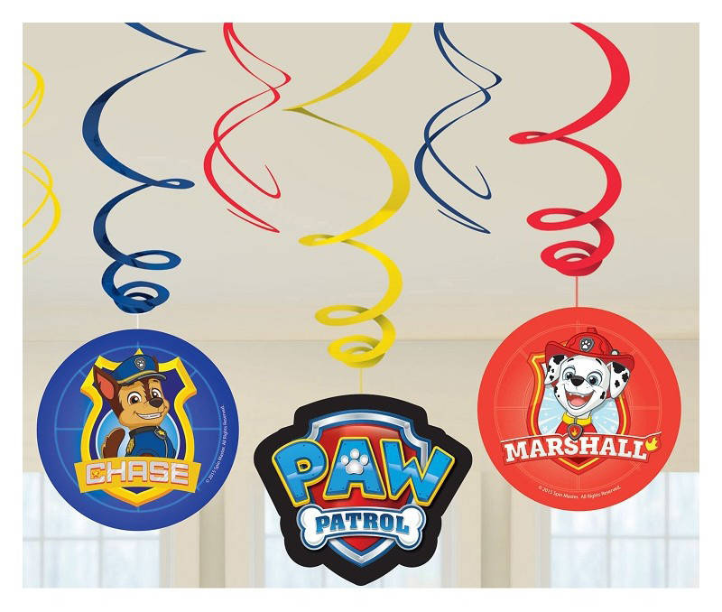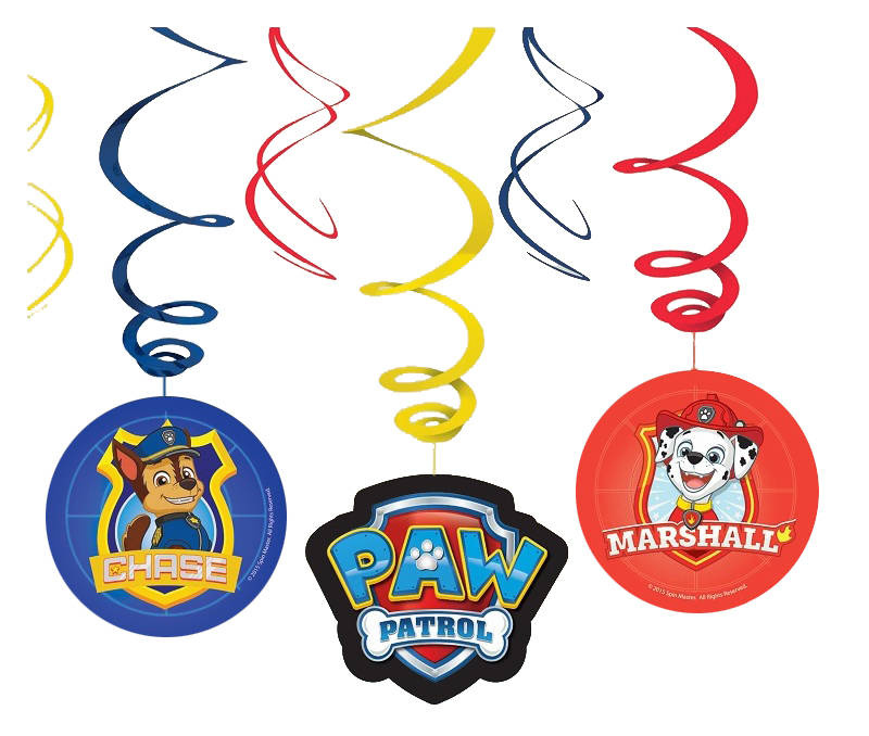- Girlanda papierowa, wisząca wzorowana na popularnej bajce Psi Patrol. W zestawie jest 6 sztuk. Długość jednego świderka to ok. 61 cm.