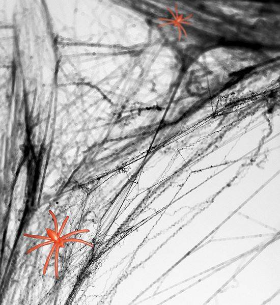Pajęczyna CZARNA na halloween 60g pomarańczowe pająki