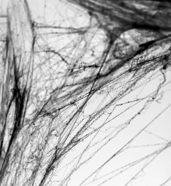 Rozkładając pajęczynę uzyskujemy długi pas, który można dowolnie rozciągać i nakładać na siebie tworząc sieć.