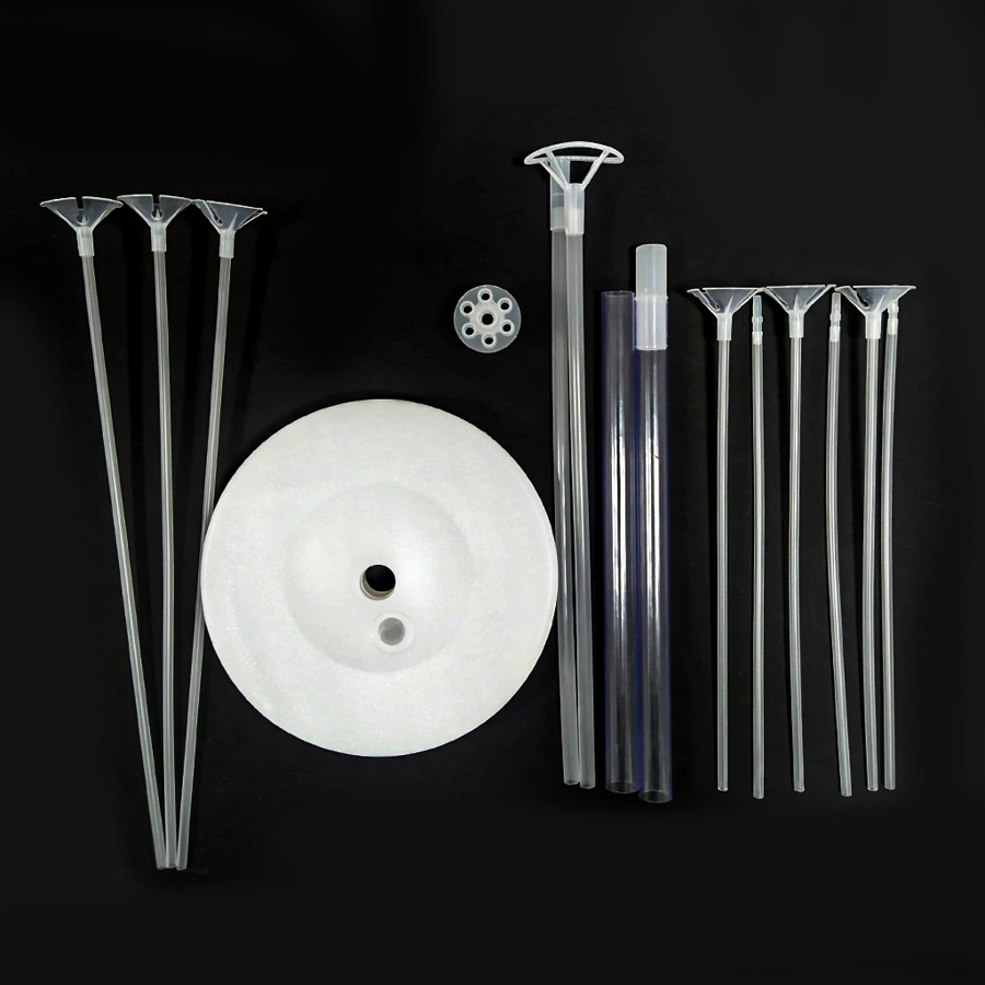 - Stojak do samodzielnego złożenia. Różna wysokość patyczków sprawia, że bez problemu można stworzyć piętrowe, balonowe kompozycje – bez użycia helu.