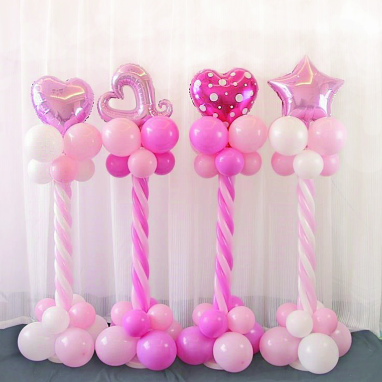 - Stojak do samodzielnego złożenia. Różna wysokość patyczków sprawia, że bez problemu można stworzyć piętrowe, balonowe kompozycje – bez użycia helu.