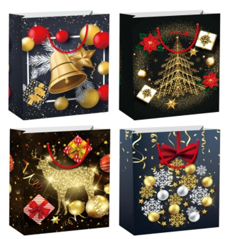 Torebka prezentowa Świąteczna Boże Narodzenie czarna 26 x 32 cm