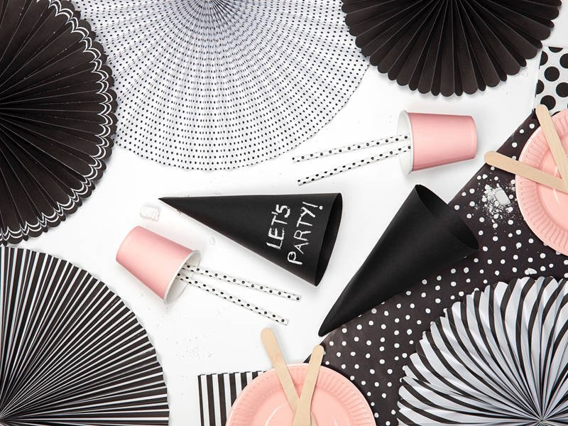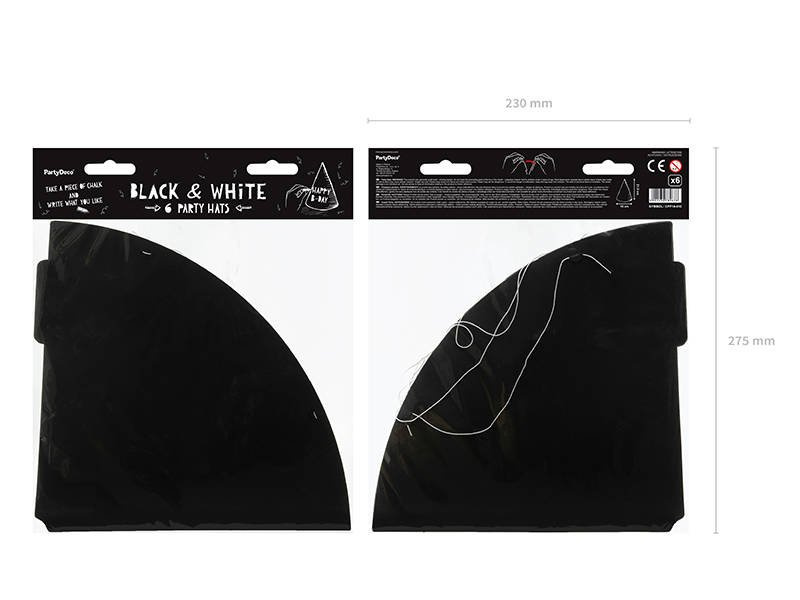Czapeczki papierowe czarne Black&White 21,5 cm 6 szt.