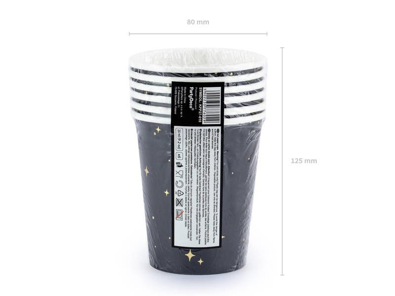 Kubeczki papierowe czarne ze złotym zdobieniem 260 ml 6 szt. Sylwester Karnawał