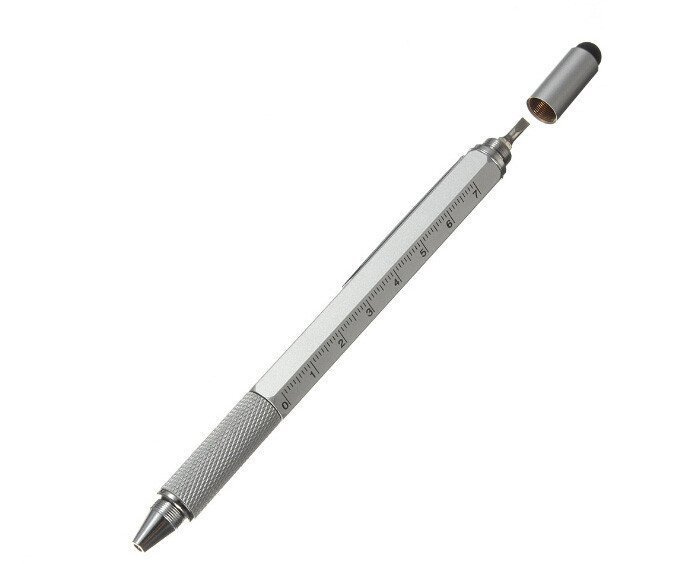 - dostępne funkcje: długopis, stylus do ekranów dotykowych, śrubokręt płaski i krzyżakowy, miarka, poziomica