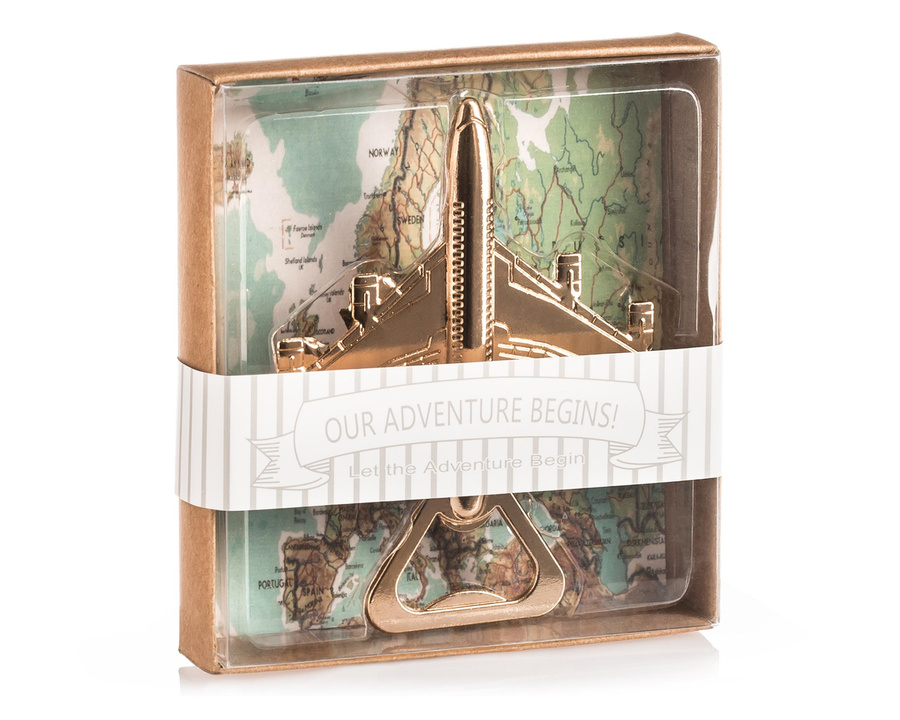 Poręczny otwieracz do butelek w kształcie samolotu przywołującego wspomnienia urlopów, super wakacji, dalszych wypadów na weekend czy podróży życia :) Otwieracz zapakowany jest ponadto w piękny kartonik upominkowy z motywem mapy, który sprawia, że otwieracz sam w sobie jest nietuzinkową ozdobą biurka czy kredensu.