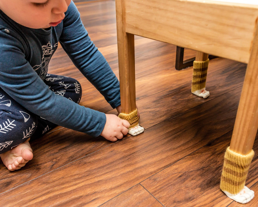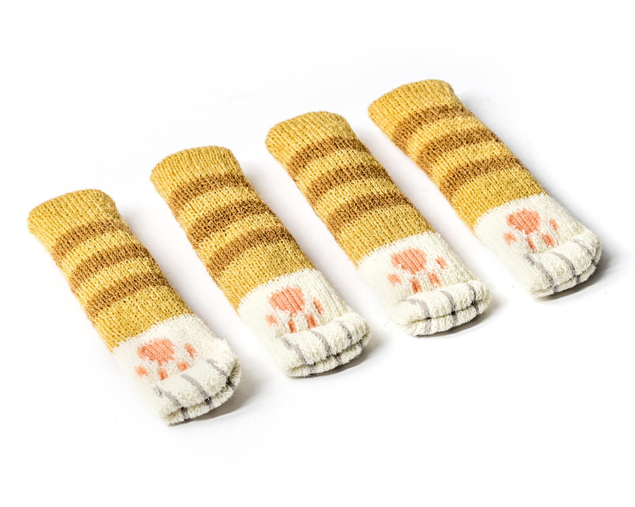 • Cztery sympatyczne i bardzo praktyczne osłonki na nogi krzeseł, stołu czy komody w kształcie kocich łapek.