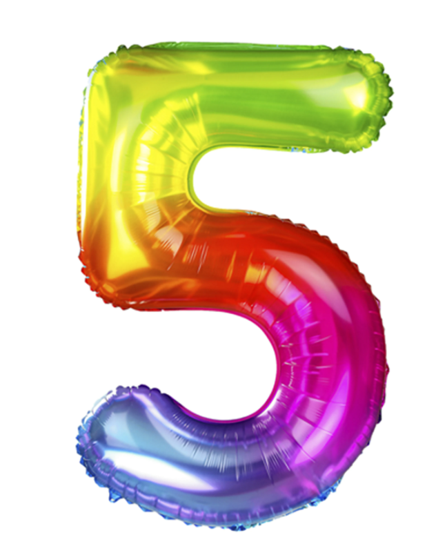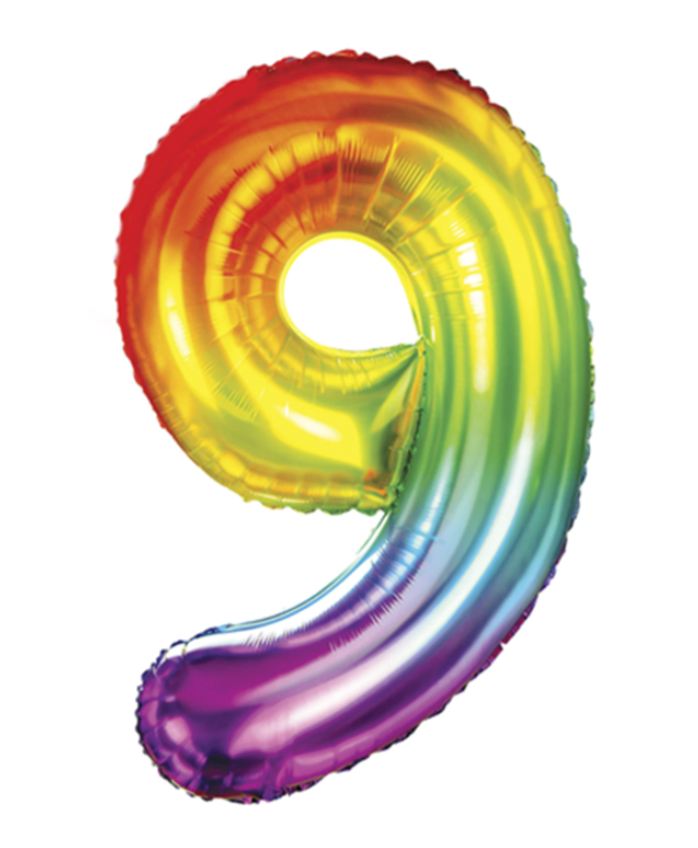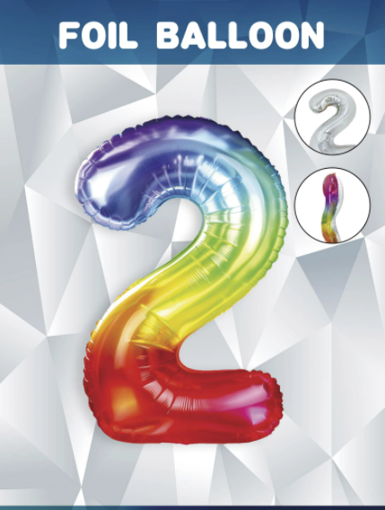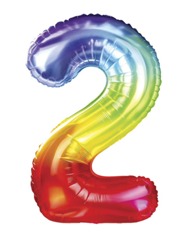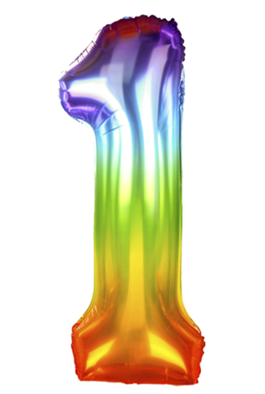 • Balon foliowy CYFRA w kolorze tęczowym (tył srebrny), wysokość ok. 100 cm (40")