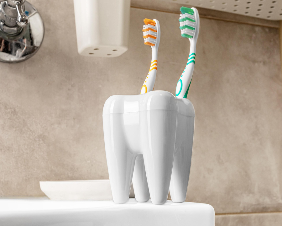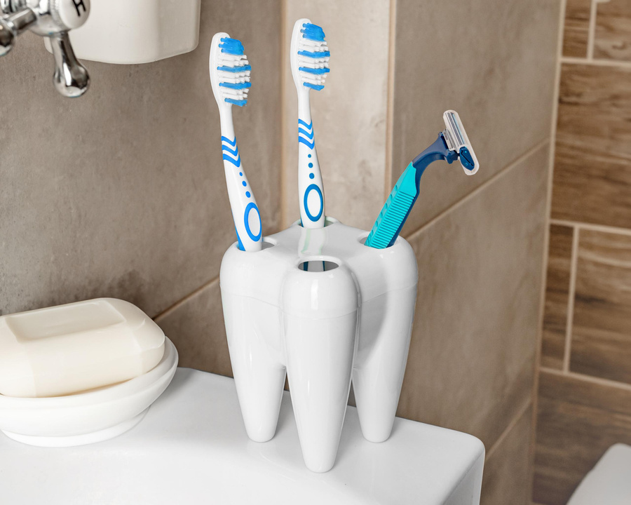 W ząbku są 4 otwory, pomieścisz więc np. szczoteczki do zębów, golarki czy pędzle do makijażu tu znajdą one swoje stałe miejsce i nigdy więcej nie będziesz ich musiał/a szukać ich wśród innych przyborów toaletowych. Ząbek to świetny prosty, miły i przyjemny dla oka prezent choćby na parapetówkę czy urodziny. Jego widok cieszy bardzo dziecięce oczy.
