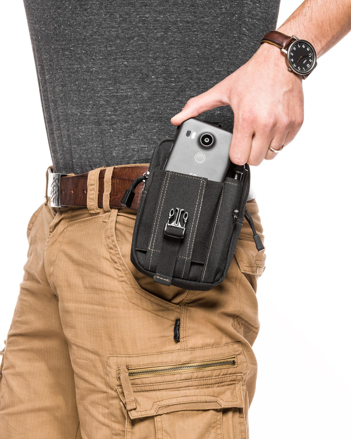 - zmieścisz w niej niezbędne na wyprawach przybory jak np.: telefon komórkowy, scyzoryk, krzesiwo, latarkę, długopis, dokumenty, papierosy, portfel itd.
