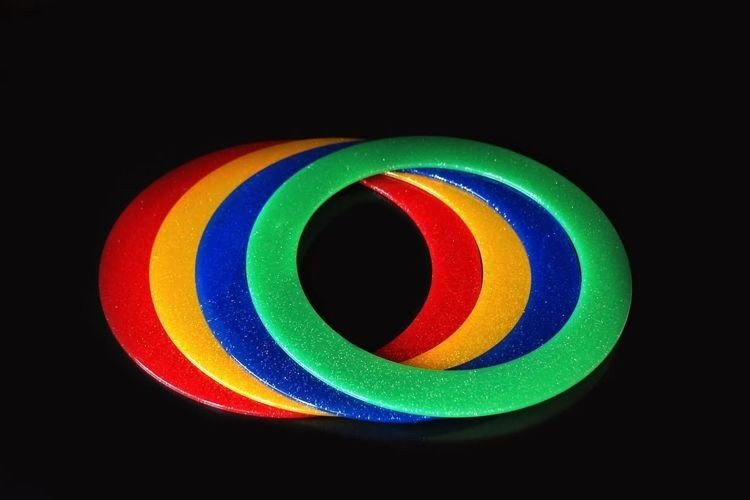 Profesjonalne kolorowe obręcze są niezastąpionym elementem animatora pedagogiki cyrku.