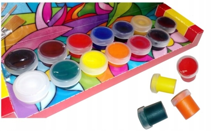 - Ilość kolorów – 12 kol + 1 farba czarna do konturowania. Farby posiadają żywe i czyste barwy.