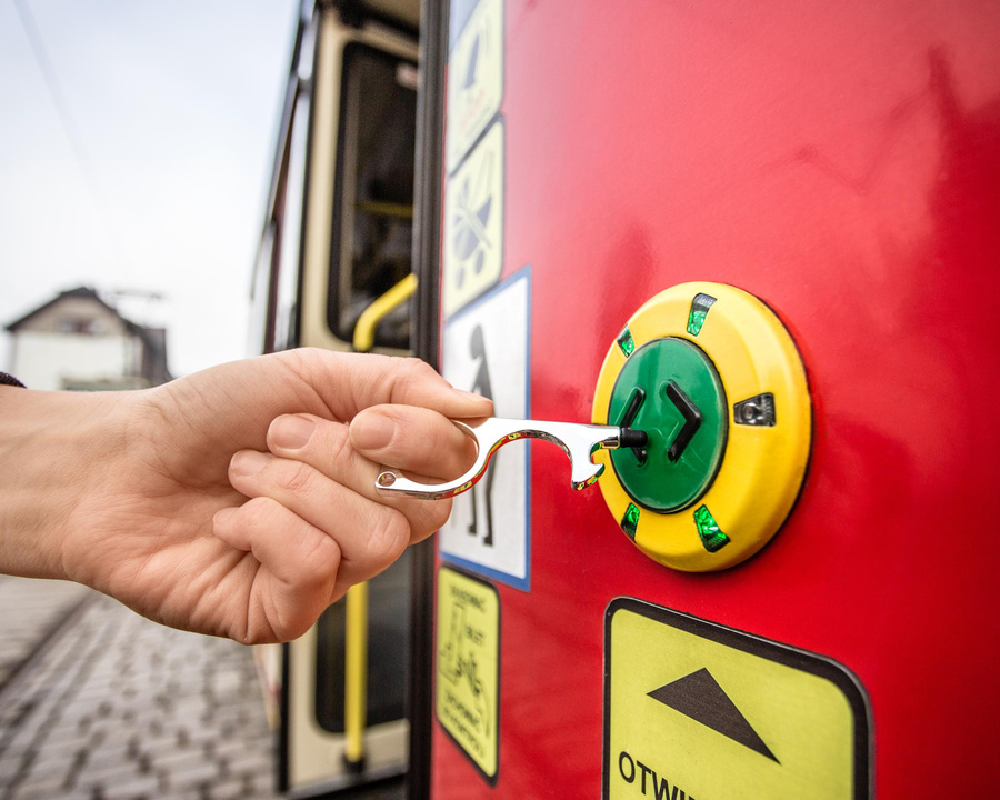 Jak ochronić się przed ryzykiem zarażanie poprzez najczęściej dotykane powierzchnie jak klamki, przyciski urządzeń (bankomaty, paczkomaty, komunikacja miejska) czy włączniki w przestrzeni publicznej, ekrany dotykowe itd.? Bezpieczne rozwiązanie jest na wyciągnięcie ręki. Bardzo praktyczny sprytny i wielofunkcyjny bezdotykowy... dotykacz, czyli brelok, dzięki któremu nie mając bezpośredniego kontaktu ręki z dotykaną powierzchnią możesz otworzyć drzwi, szafy, lodówki, przywoływać windę, wciskać różne guziki, a dzięki rysikowi obsługiwać smartfon lub inne urządzenia, jak bankomat czy paczkomat, wpisywać piny, kody itd., ale także otwierać butelki, a przede wszystkim zachować bezpieczeństwo przed zarażeniem wirusami i bakteriami.