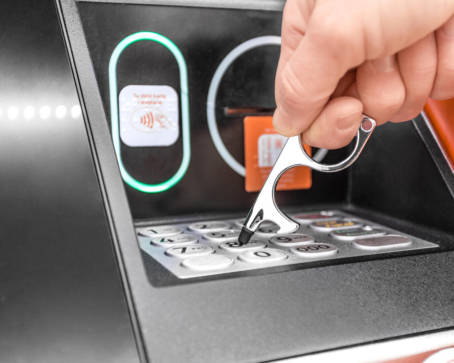 - Bardzo praktyczny wielofunkcyjny bezdotykowy... dotykacz, czyli brelok, dzięki któremu nie mając bezpośredniego kontaktu z dotykaną powierzchnią możesz otworzyć drzwi, obsługiwać smartfon czy inne urządzenia, jak bankomat...