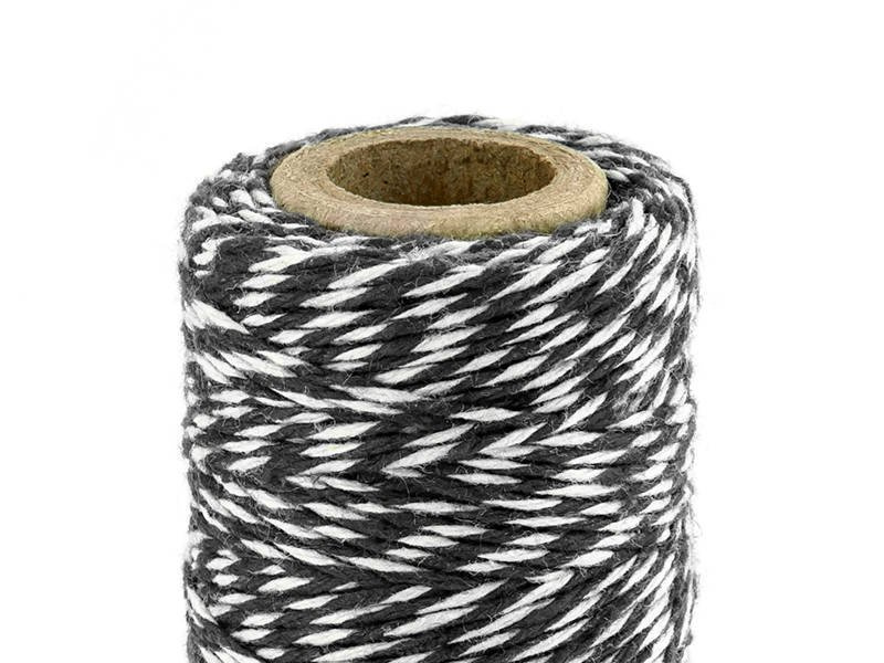 Czarno biały sznurek, który idealnie sprawdzi się przy wszelkiego rodzaju dekoracjach lub pakowaniu prezentów.
