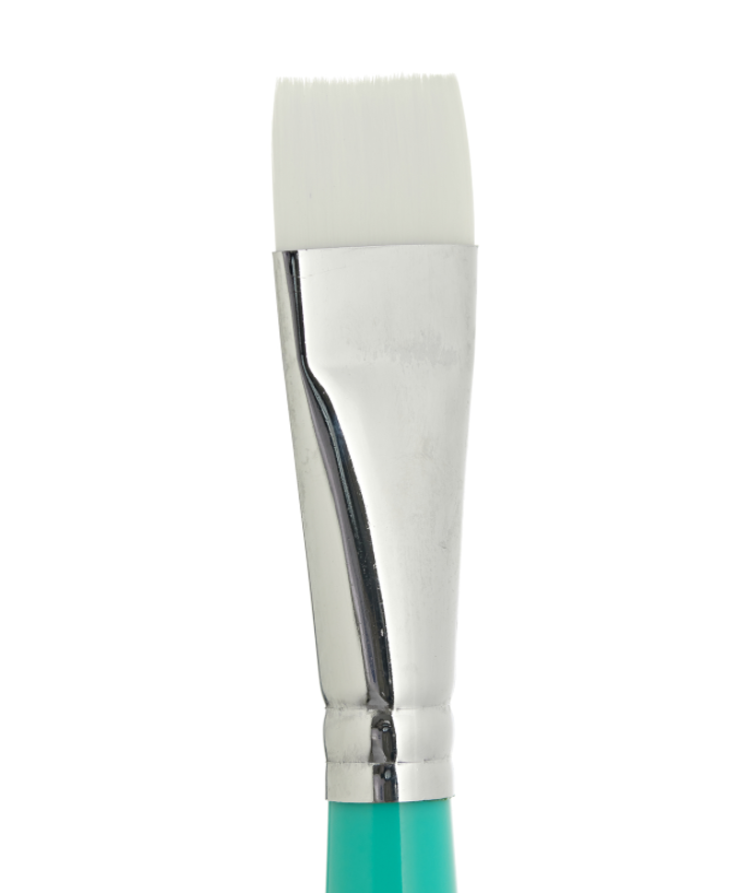 Pędzle posiadają akrylowe uchwyty w kolorze turkusowym, dzięki czemu nie łuszczą się tak, jak pędzle z rączką drewnianą.