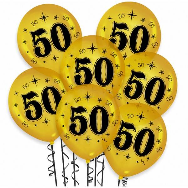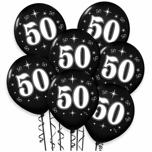 - Eleganckie balony, przeznaczone na 50 urodziny. Złote lub czarne, z białym nadrukiem. Rozmiar: 12" (ok. 30 cm). Cena za sztukę.