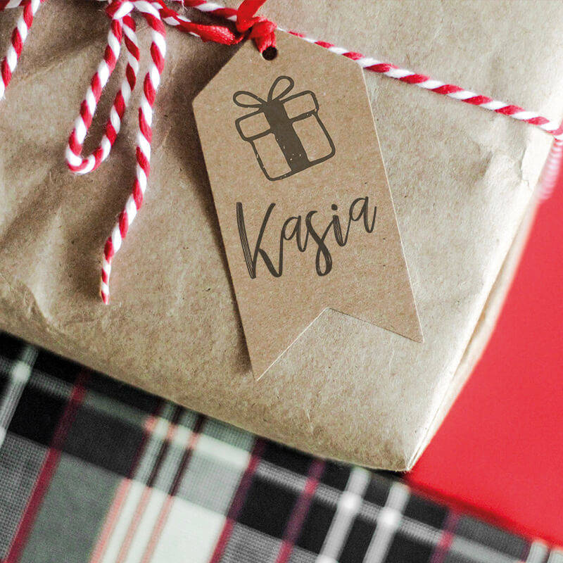 Pieczątka jest zapakowana w elegancki, przeźroczysty i odporny blister z perforacją.