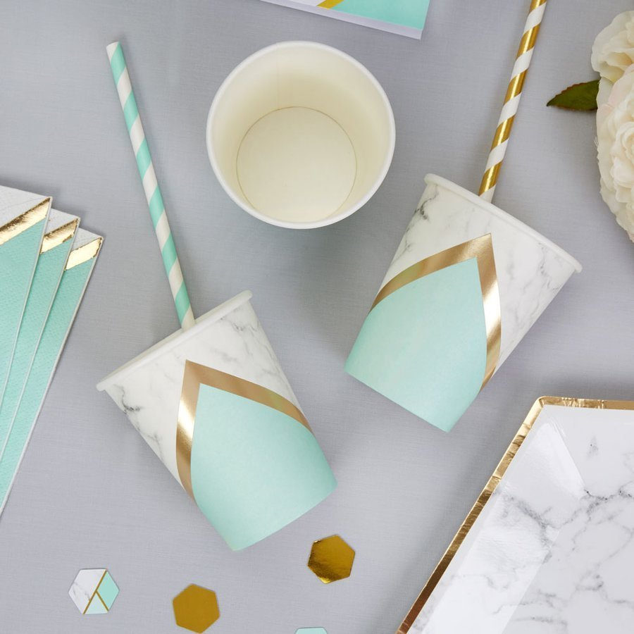 Kubeczki papierowe marmur złote paski Mint papierowy 8 szt.