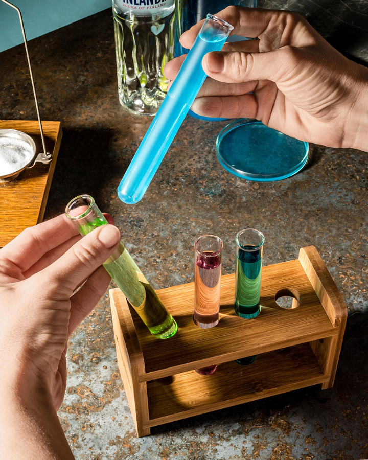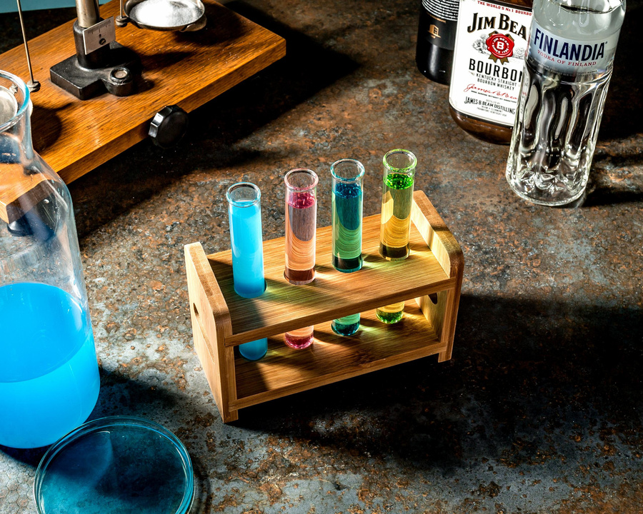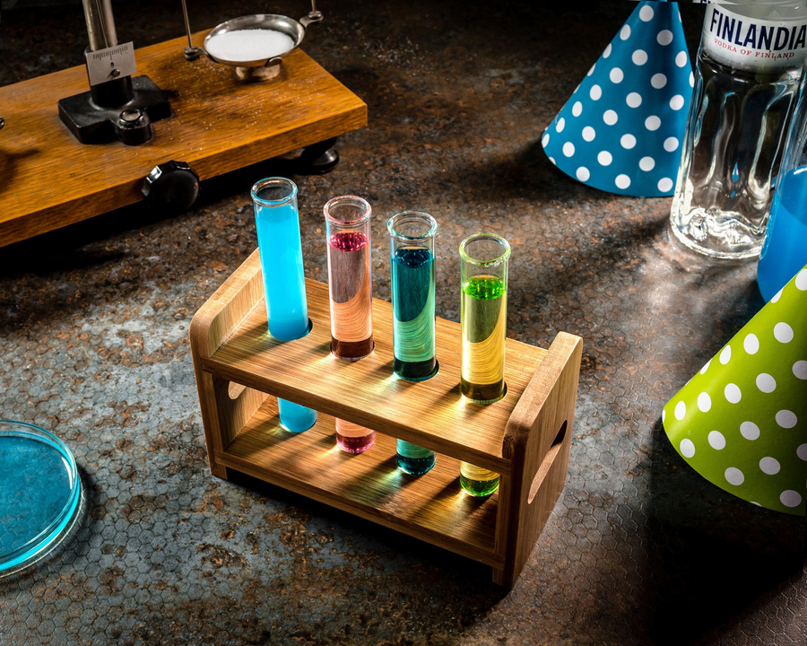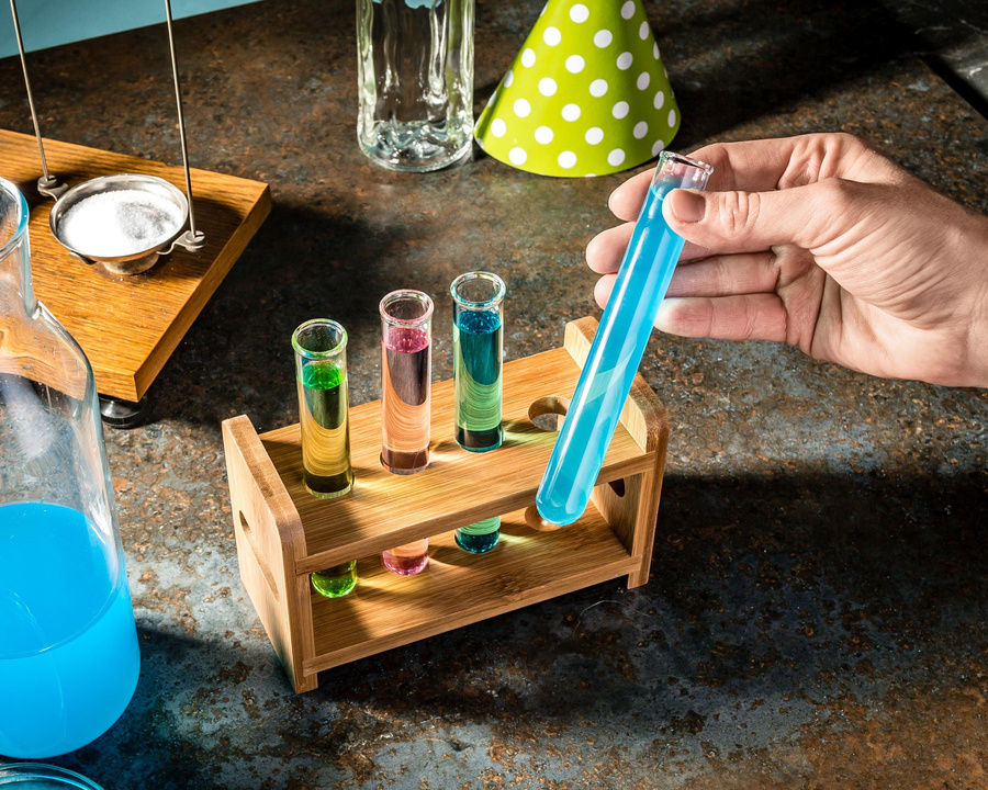 - imprezowe probówki czyli szklane kieliszki w laboratoryjnym kształcie